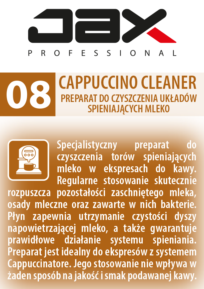JAX PROFESSIONAL 08 250 ml CAPPUCCINO CLEANER - PREPARAT DO CZYSZCZENIA UKŁADÓW SPIENIAJĄCYCH MLEKO