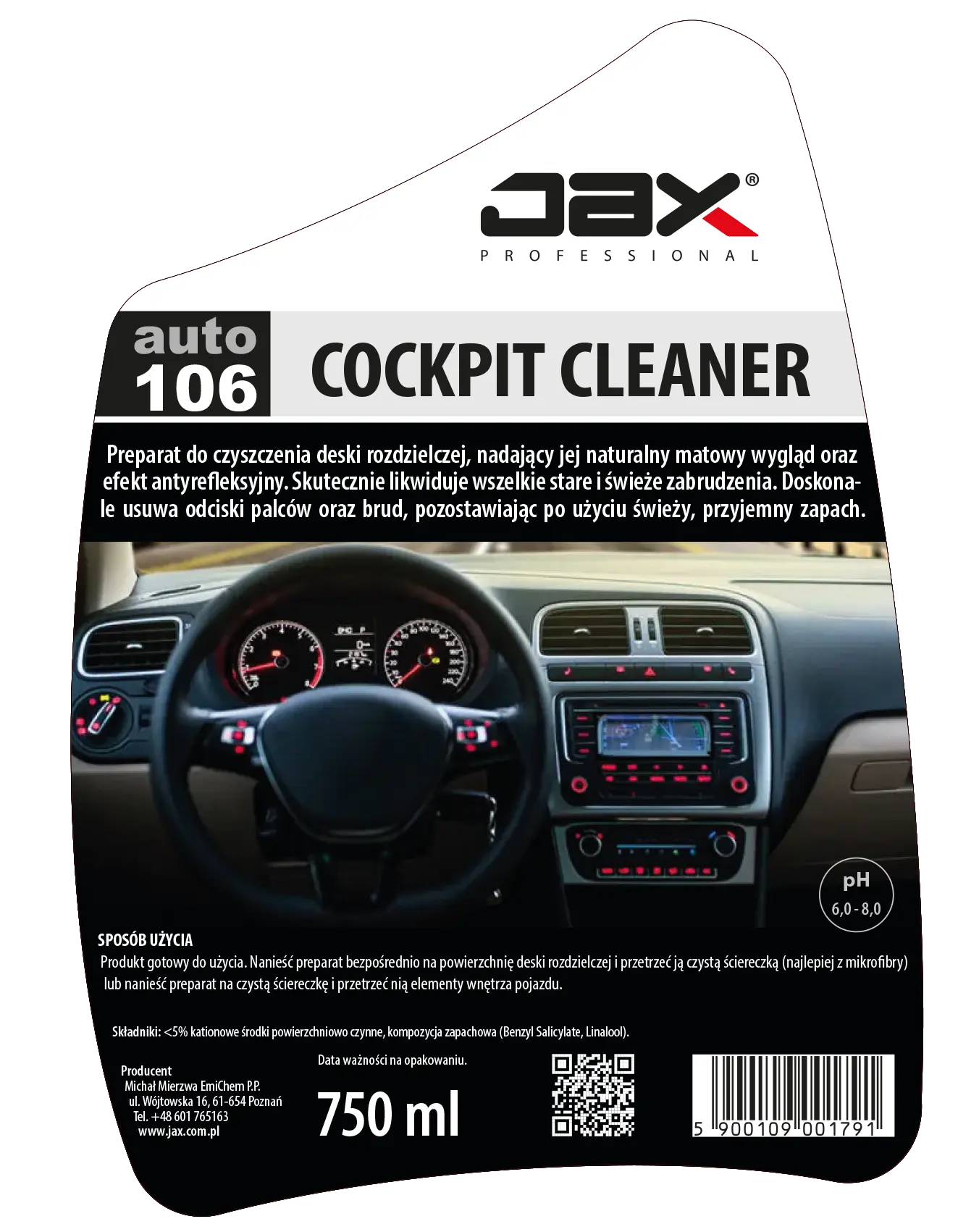 JAX PROFESSIONAL 106 750 ml - COCKPIT CLEANER – PŁYN ANTYREFLEKSYJNY DO MYCIA I PIELĘGNACJI DESKI ROZDZIELCZEJ