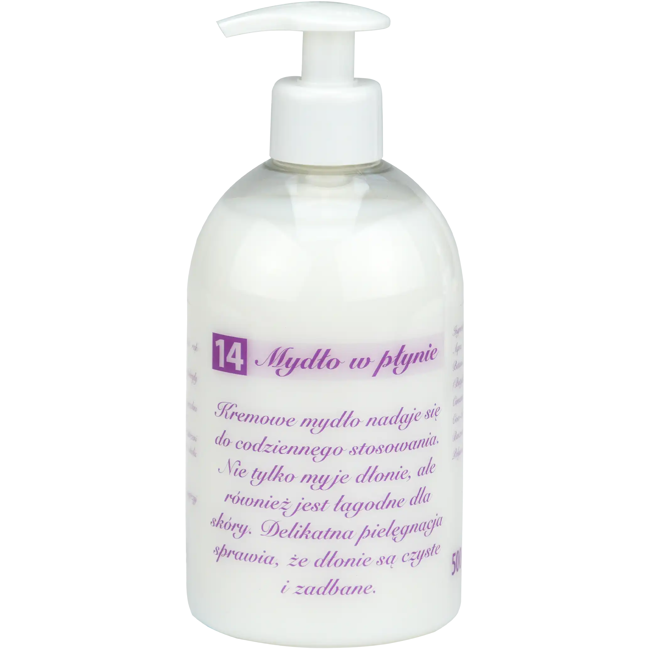 Kremowe mydło w płynie jakości Premium do ciała i włosów. Lekko perfumowane, białe. Wszechstronne - do mycia rąk oraz stosowania pod prysznicem. Sprawdza się też jako mydło do golenia, czy nawet jako szampon. Łagodne, nie podrażnia skóry. Przebadane dermatologicznie i mikrobiologicznie. Nie zawiera barwników. Idealne do delikatnej skóry narażonej na występowanie odczynów alergicznych. Nadaje się do mycia rąk przed chirurgiczną dezynfekcją.