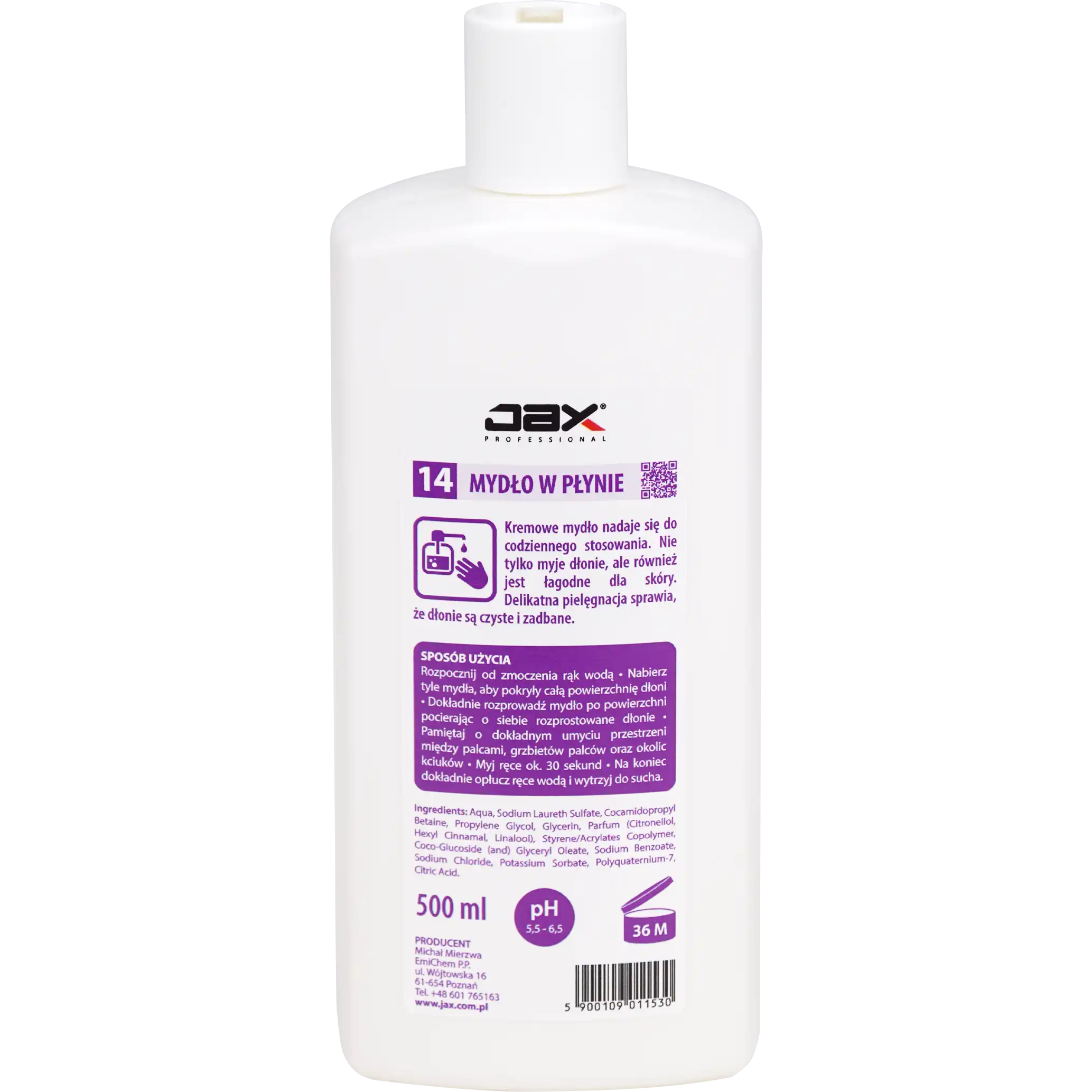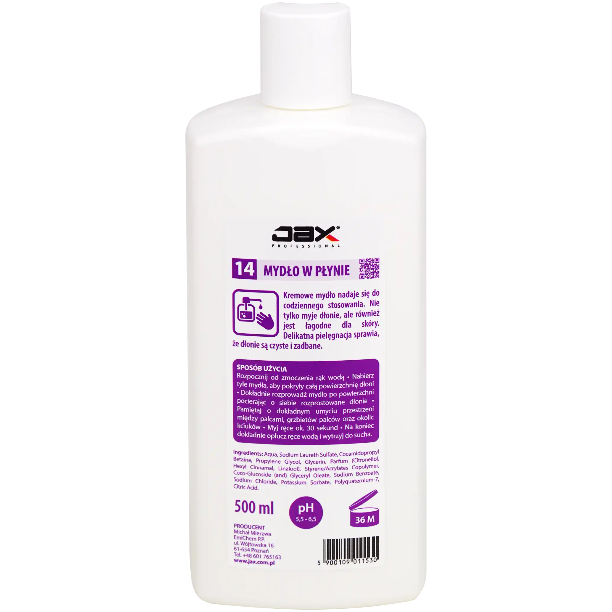 JAX PROFESSIONAL 14 500 ml Refill - MYDŁO W PŁYNIE kremowe, delikatne do higienicznego mycia rąk i ciała, nie wysusza skóry, do mycia twarzy, do mycia włosów, z efektem bakteriobójczym