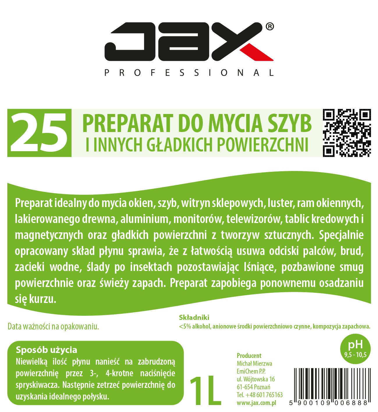 JAX PROFESSIONAL 25 1L - Płyn do mycia szyb, szkła i luster