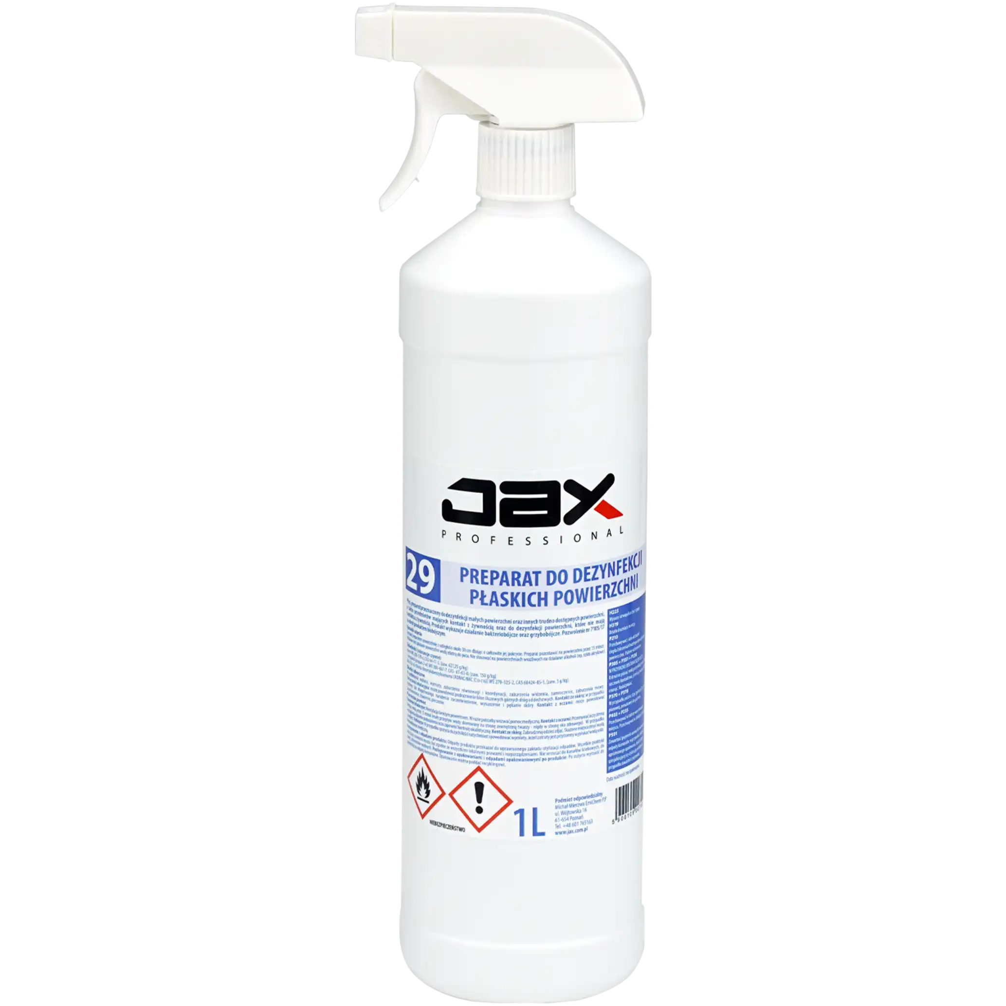 JAX PROFESSIONAL 29 1L - PREPARAT PŁYN DO DEZYNFEKCJI PŁASKICH POWIERZCHNI, DO DEZYNFEKCJI PRZEDMIOTÓW MAJĄCYCH KONTAKT Z ŻYWNOŚCIĄ, DO DEZYNFEKCJI SPRZĘTU MEDYCZNEGO, APARATURY MEDYCZNEJ