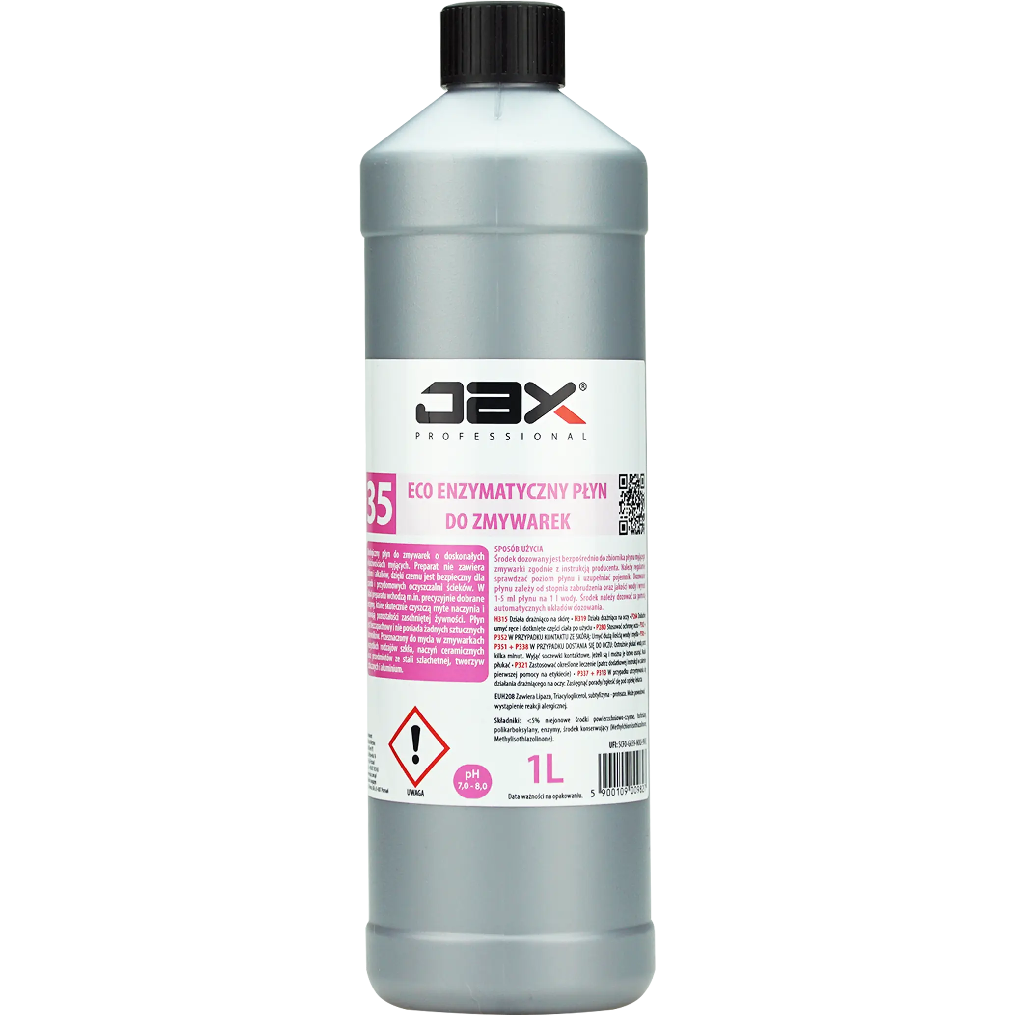 JAX PROFESSIONAL 35 1L - ECO ENZYMATYCZNY PŁYN DO ZMYWAREK do mycia szkła, naczyń ceramicznych, mycia przedmiotów ze stali szlachetnej, aluminium i tworzyw sztucznych