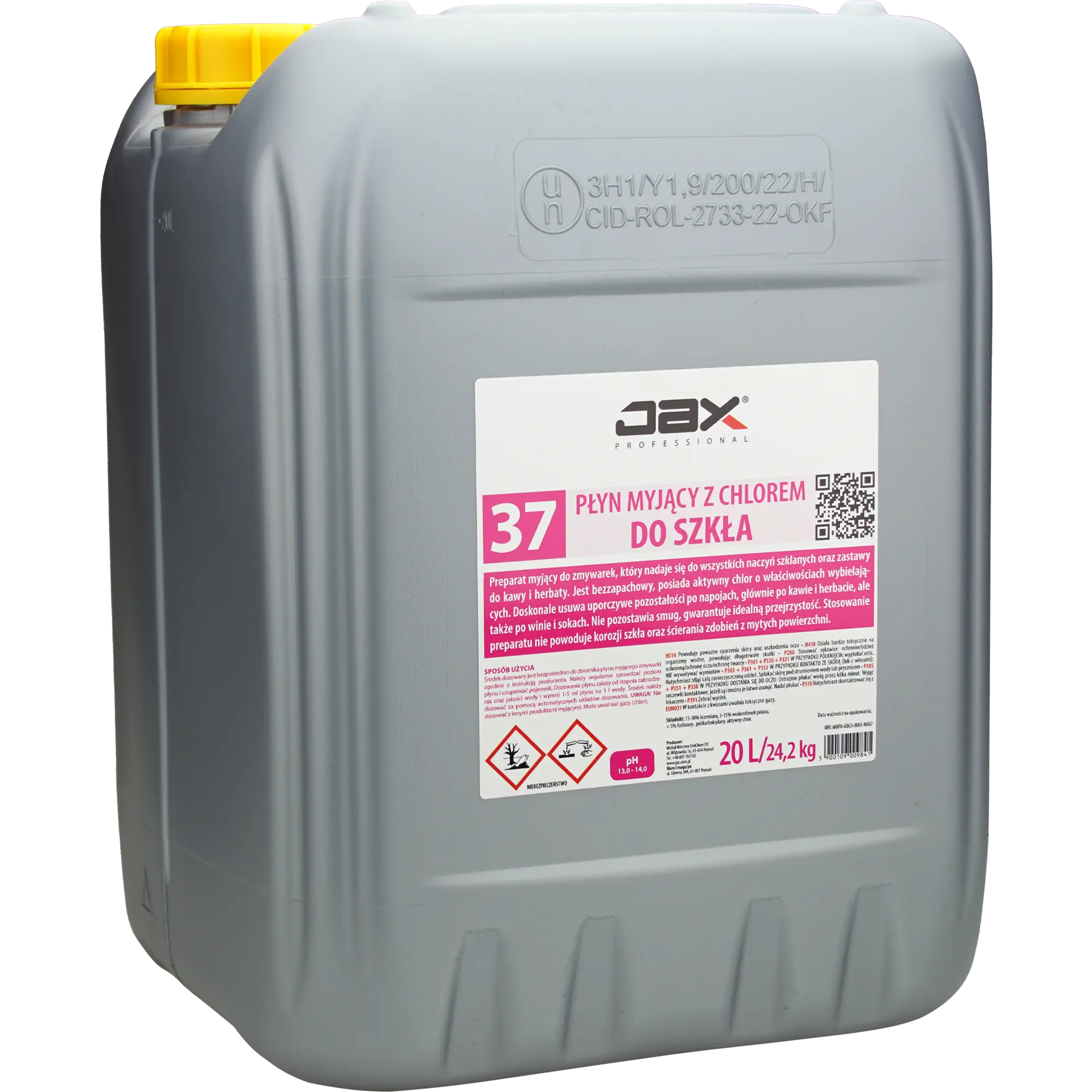 JAX PROFESSIONAL 37 20L - PŁYN Z CHLOREM DO MYCIA SZKŁA do zmywania szklanej zastawy do kawy, do herbaty, zmywa osady po winie, soku